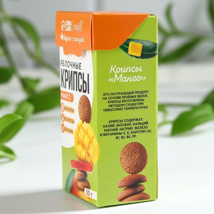 Печенье полезное, яблочные крипсы, вкус: манго, БЕЗ САХАРА, 30 г.
