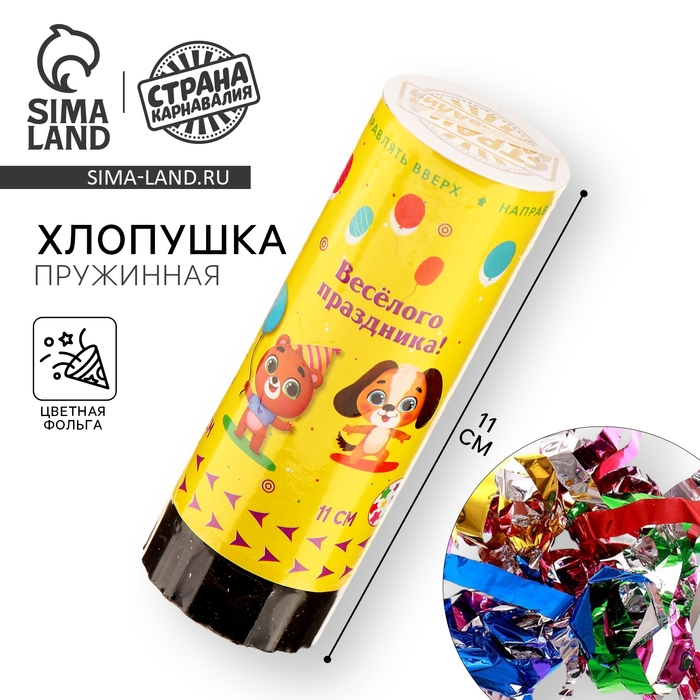 Хлопушка пружинная поворотная «Весёлого праздника», 11см