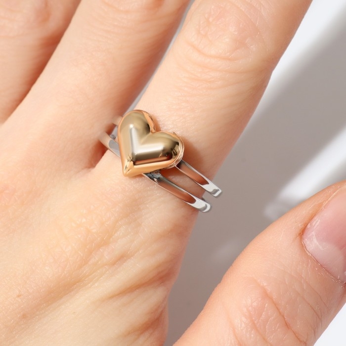 Кольцо «Сердце» дуо нитей, цвет золотистый в серебре, безразмерное