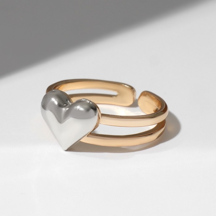 Кольцо «Сердце» дуо нитей, цвет серебристый в золоте, безразмерное