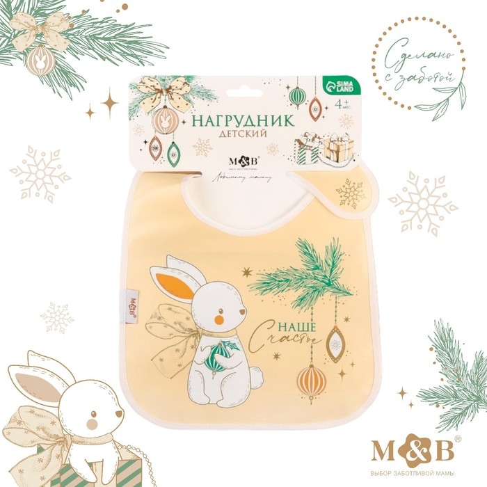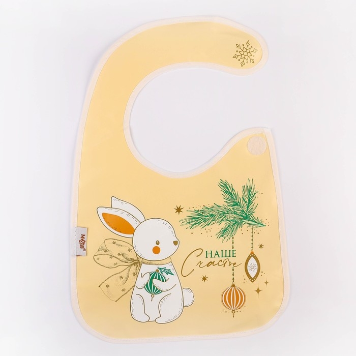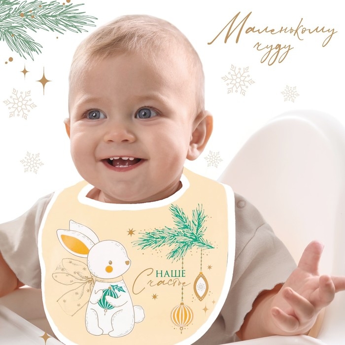 Нагрудник для кормления новогодний «Наше счастье», непромокаемый на липучке, с карманом, цвет белый, подарочная упаковка