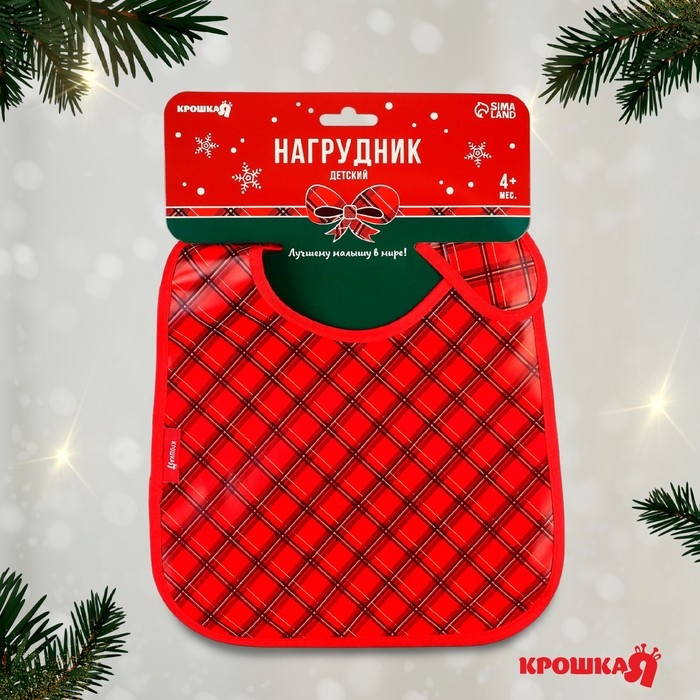 Нагрудник для кормления новогодний «Лучшему малышу», непромокаемый на липучке, с карманом, подарочная упаковка, Крошка Я