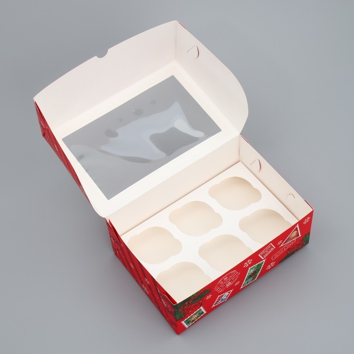 Коробка складная на 6 капкейков с окном «Новогодняя посылка», 25 х 17 х 10 см, Новый год