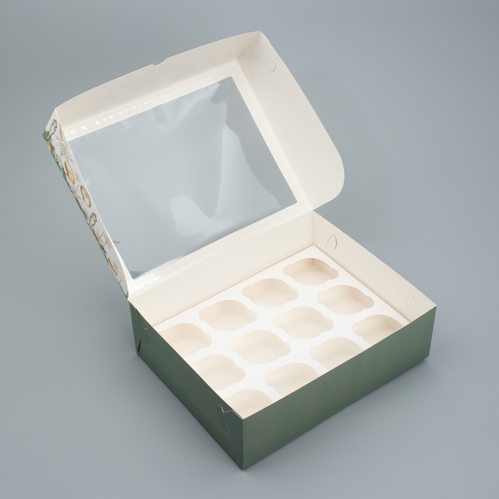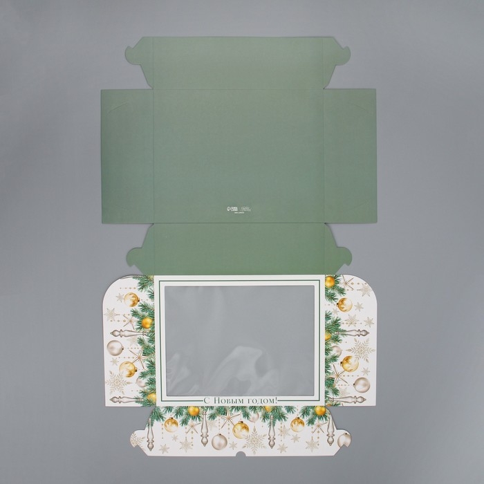 Коробка складная на 12 капкейков с окном «С Новым годом!» 32.8 х 25.6 х 10 см, Новый год
