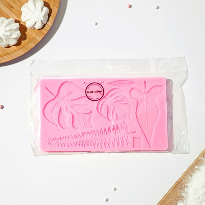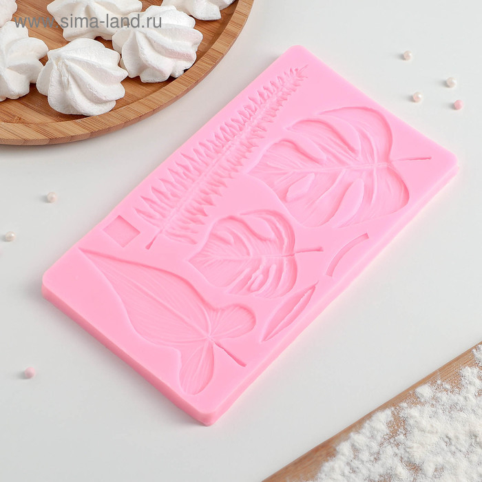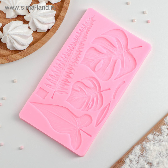 Молд Доляна «Тропические листья», силикон, 20,7×12 см, цвет розовый