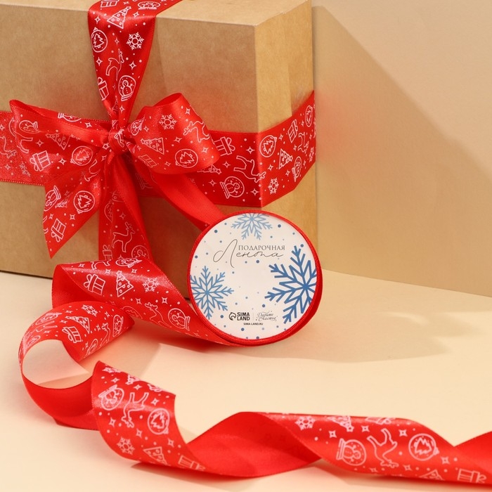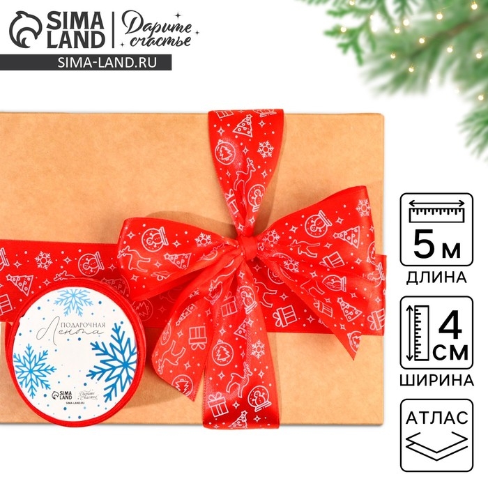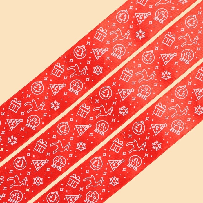 Лента атласная «Новогодние игрушки», , 4 см × 5 метров