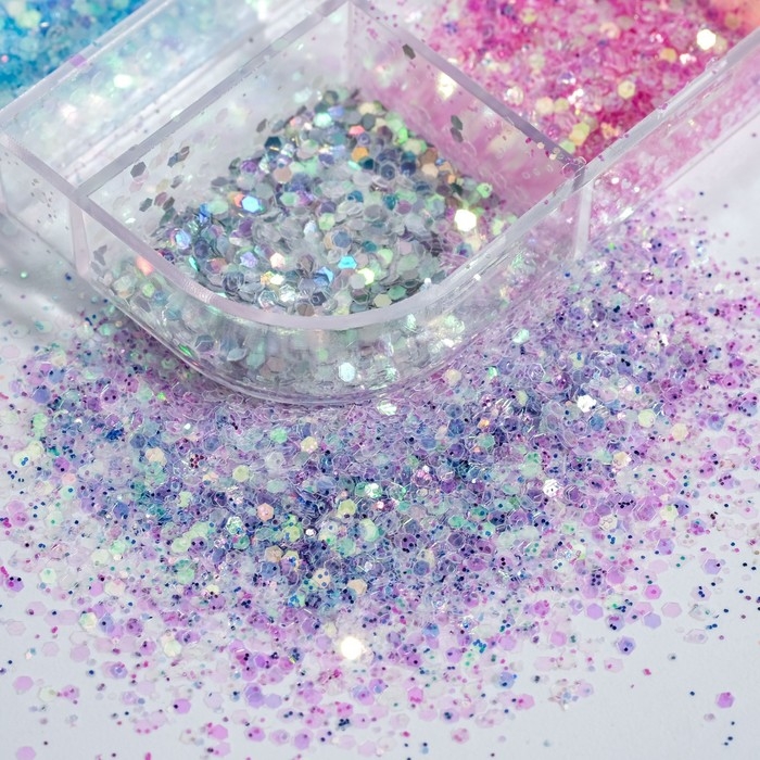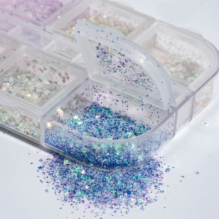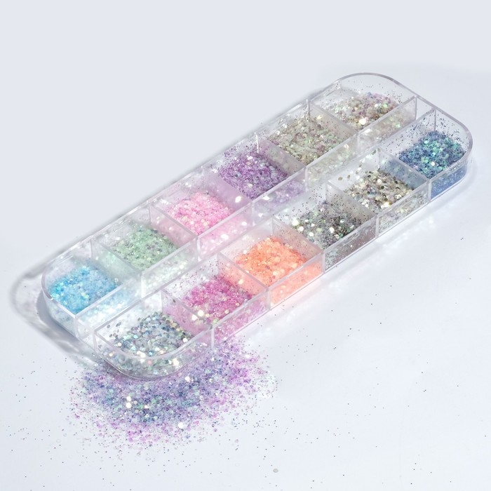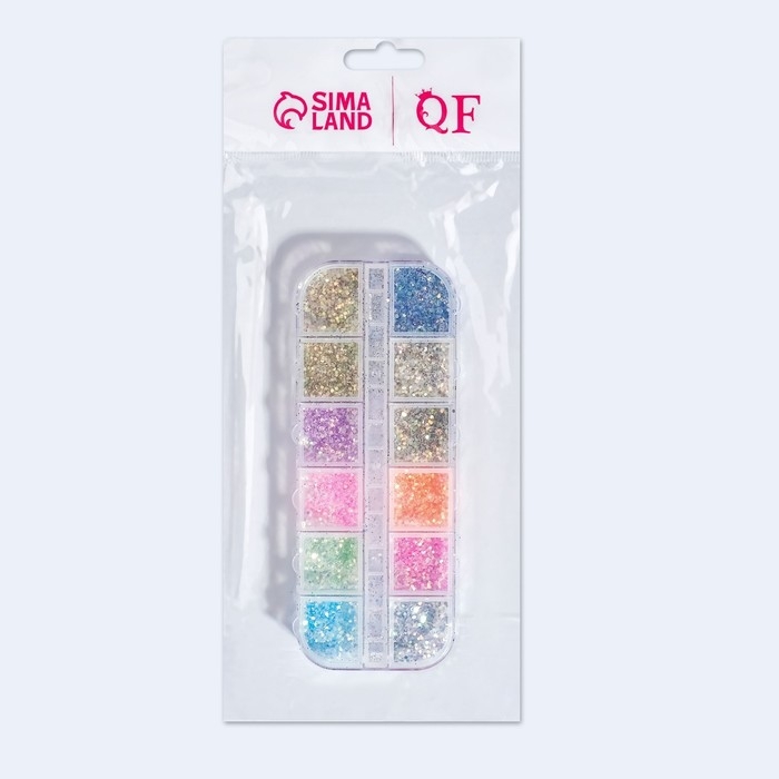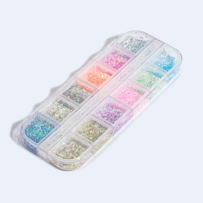 Блёстки для декора ногтей, 12 ячеек, мелкие, разноцветные