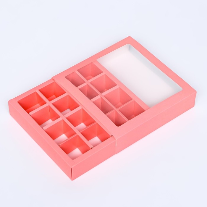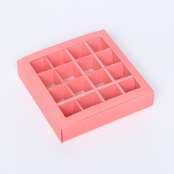 Коробка для 16 конфет, розовая, 17,7 х 17,7 х 3,8 см. Кондитерская упаковка