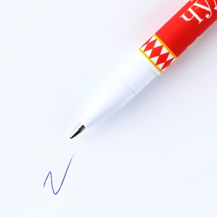 Ручка шариковая синяя паста, пластиковая со звездой "С 23 Февраля"