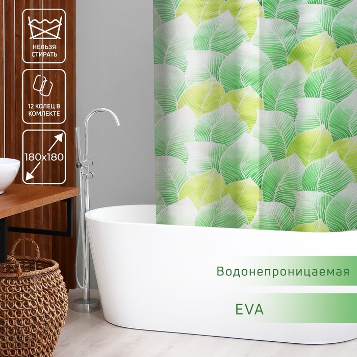 Штора для ванной Доляна «Листья», 180×180 см, EVA