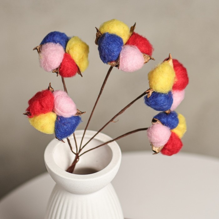 Декор сухоцвет "Хлопок" d-5 см, 30 см,микс набор 5шт