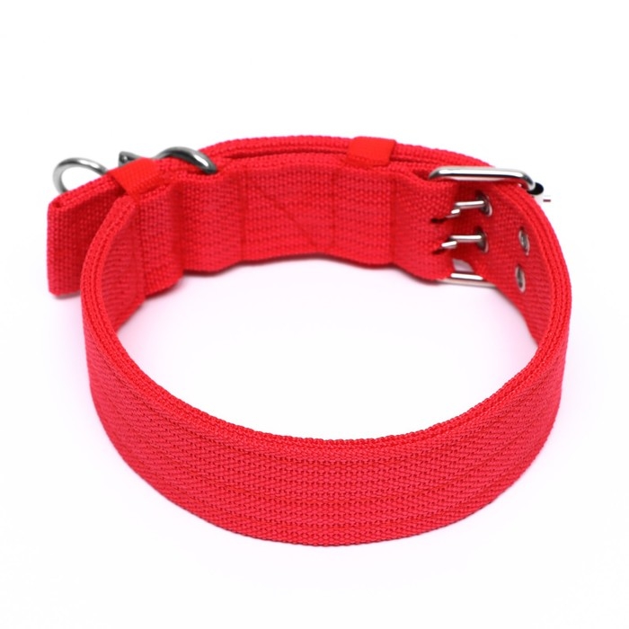 Ошейник "Комфорт" комбинированный (полиэстер, искусственная кожа), 58 х 3 см, ОШ 45-52 см, красный 6