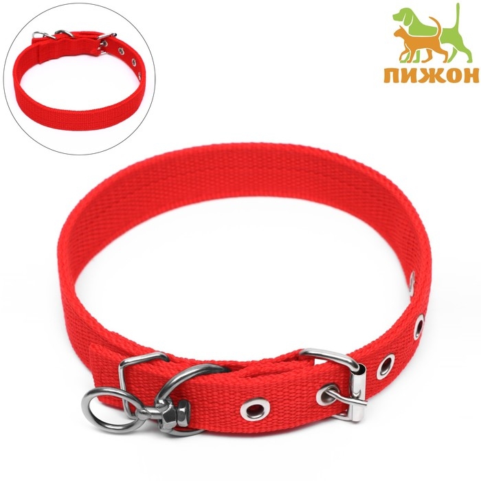 Ошейник двухслойный с вертлюгом, 55 х 2,5 см, полиэстер, красный