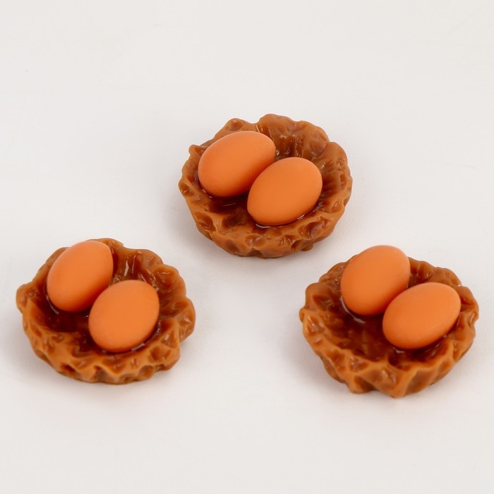 Миниатюра кукольная «Яйца в гнезде», набор 3 шт., размер 1 шт. — 2 × 2 × 1 см