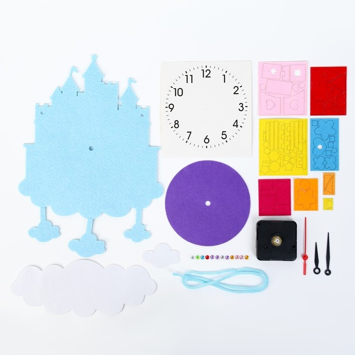 Набор для создания детских настольных часов способствует развитию мелкой моторики ребёнка, в развлекательной форме помогает изучить, как работает часовой механизм и "что такое время?"