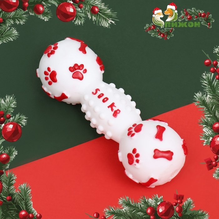 Игрушка пищащая "Новогодняя Гантель", 12,5 см, белая