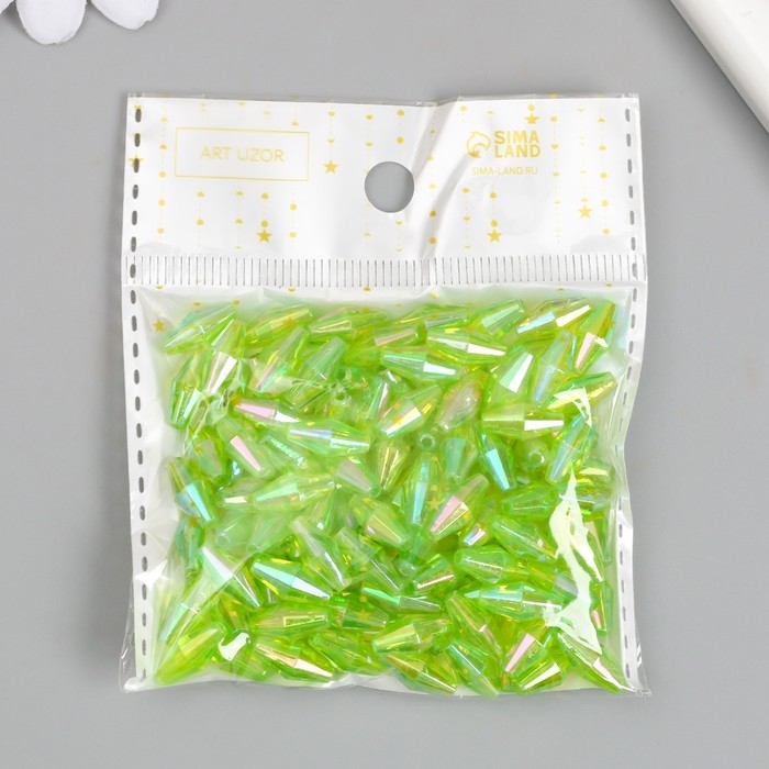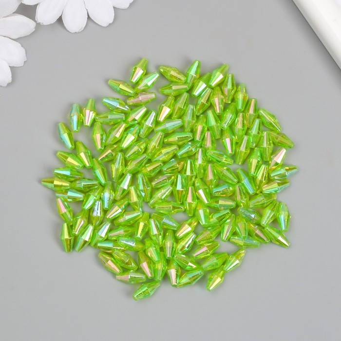 Бусины для творчества пластик "Ромб-кристалл голография зелень" набор 20 гр 0,6х0,6х1,2 см