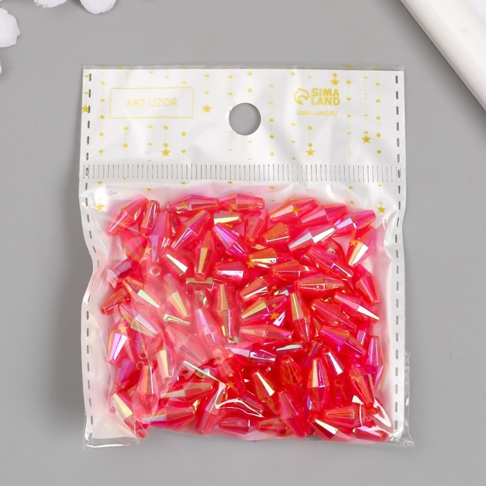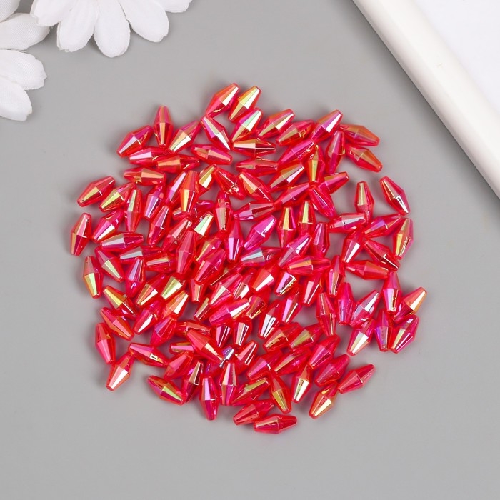 Бусины для творчества пластик "Ромб-кристалл голография фуксия" набор 20 гр 0,6х0,6х1,2 см