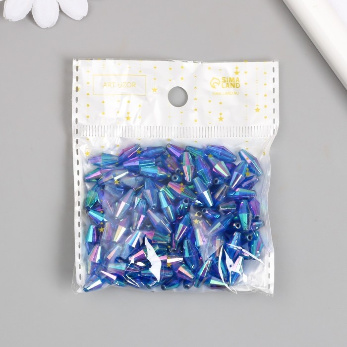 Бусины для творчества пластик "Ромб-кристалл голография синий" набор 20 гр 0,6х0,6х1,2 см