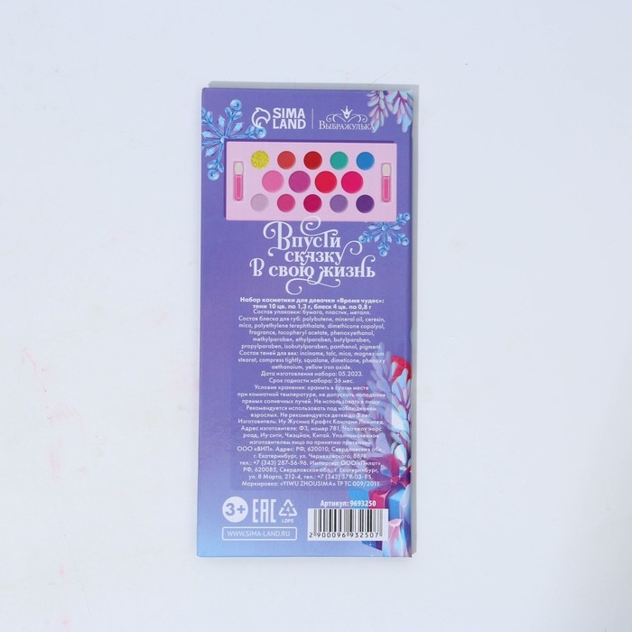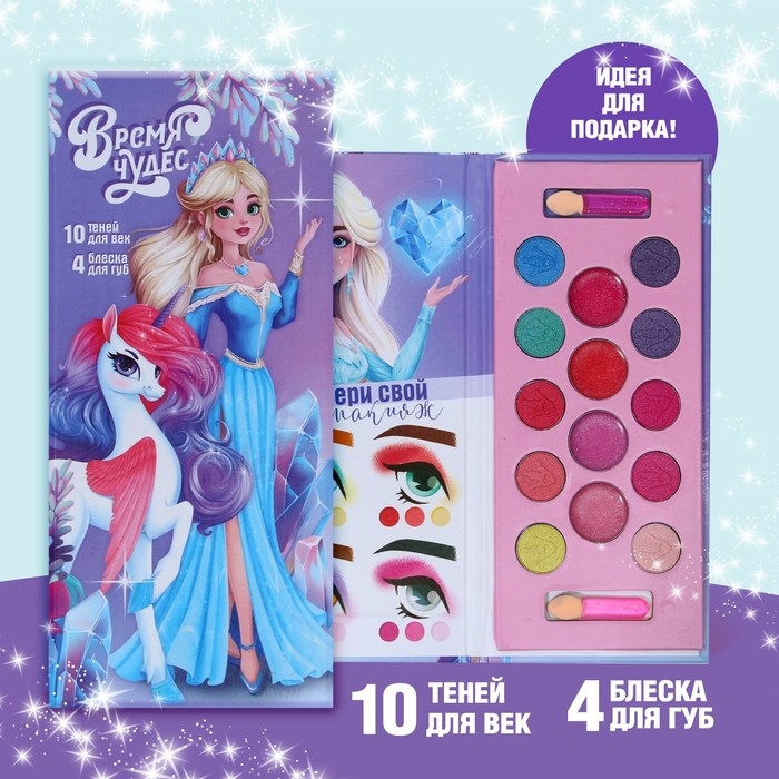 Набор косметики для девочки «Новый год! Время чудес», тени 10 цв по 1,3 гр, блеск 4 цв по 0,8 гр