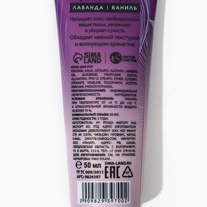 Крем для рук, 50 мл, аромат лаванды, ЧИСТОЕ СЧАСТЬЕ
