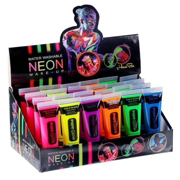 Грим для лица, неон, светится ночью, 14 мл., цвет МИКС