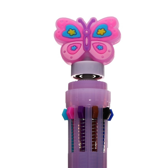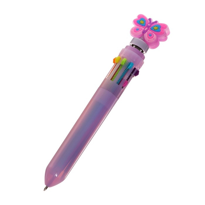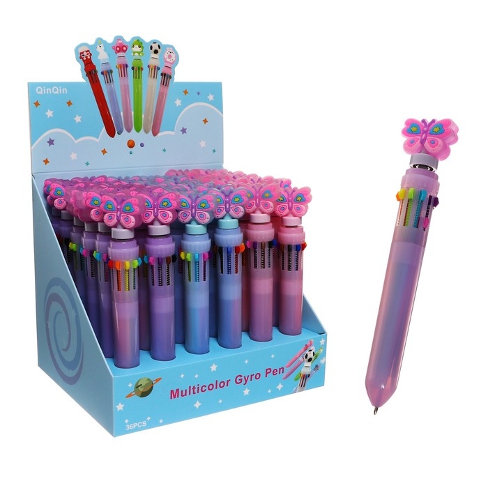 Ручка шариковая автоматическая 10-ти цветная, "Бабочка-спиннер", МИКС