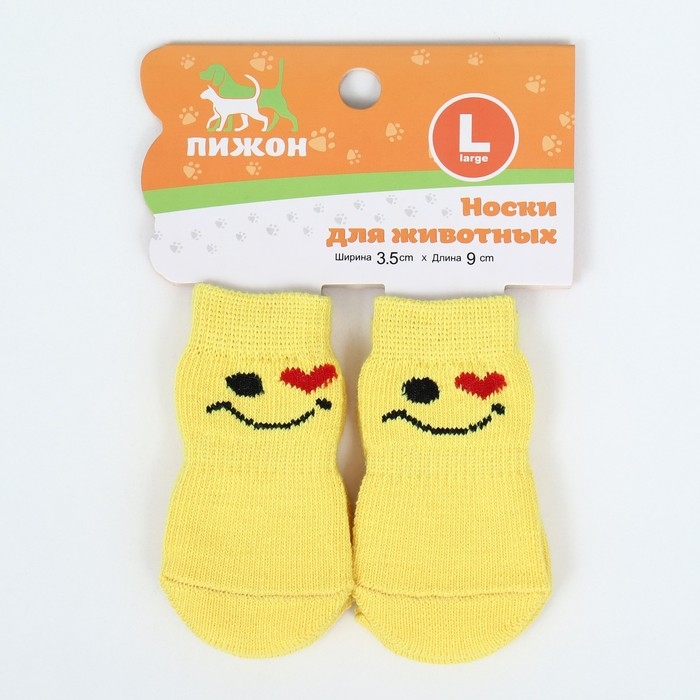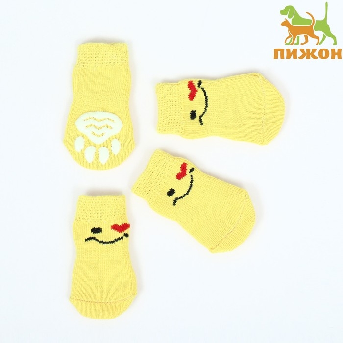 Носки нескользящие "Смайл", размер L (3,5/5 * 9 см), набор 4 шт, жёлтые