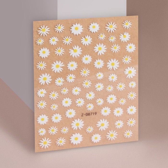Наклейки для ногтей «Букеты ромашек», объёмные, цвет белый