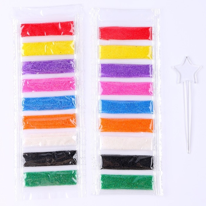 С этим волшебным набором ваш ребёнок сможет создать картину из цветного песка. Фреска станет отличным украшением детской комнаты и объектом гордости маленького художника.