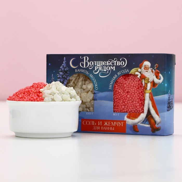 Подарочный набор косметики новогодний «Время чудес и волшебства!», соль для ванны и жемчуг для ванны, Новый Год