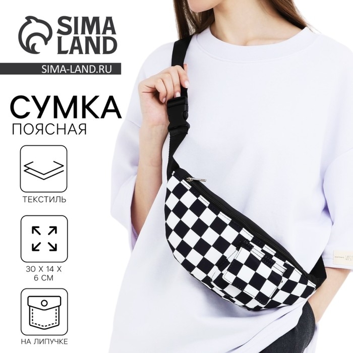 Сумка поясная текстильная с карманом "Society" 30*14*6 см