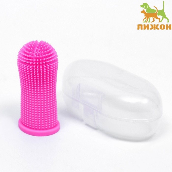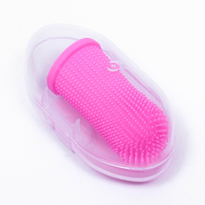 Щётка для чистки зубов животных, 5,5 х 2,5 см, розовая, контейнер 7 х 4 см