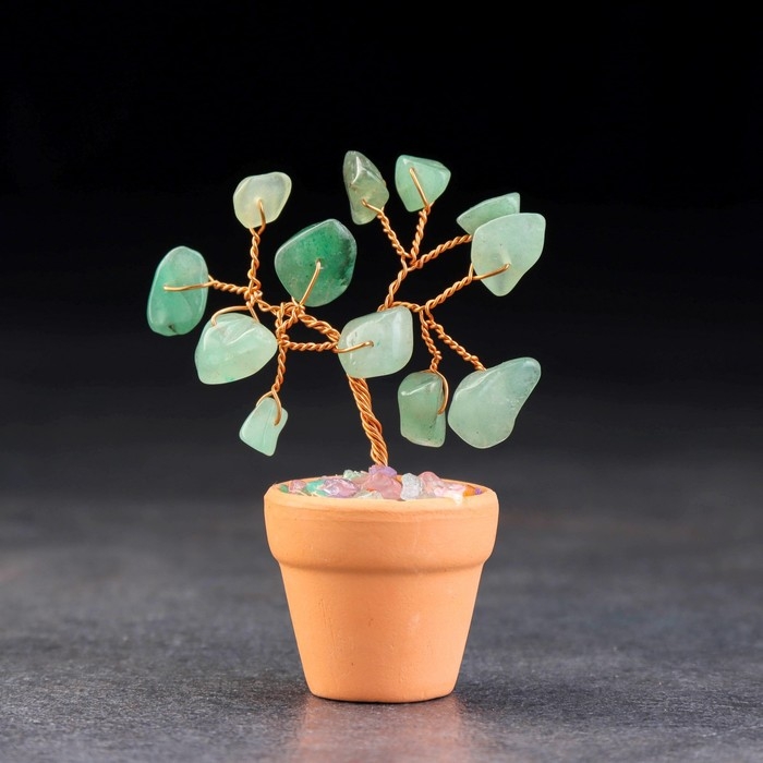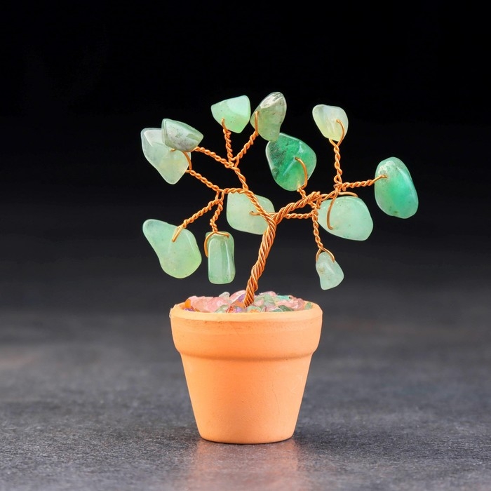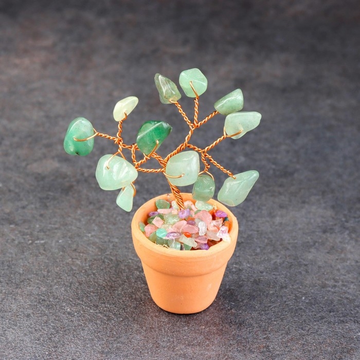 Сувенир в горшочке "Дерево Энергии. Авантюрин зеленый", натуральный камень, 9 х 3,5 см