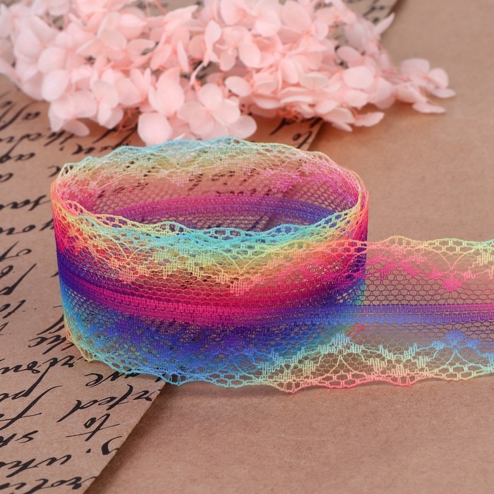 Кружево капроновое «Радуга волна», 35 мм × 10 ± 1 м, цвет разноцветный №2