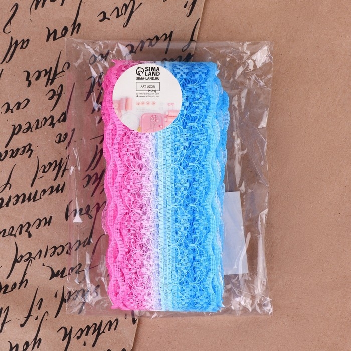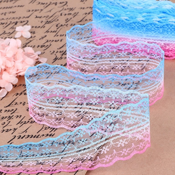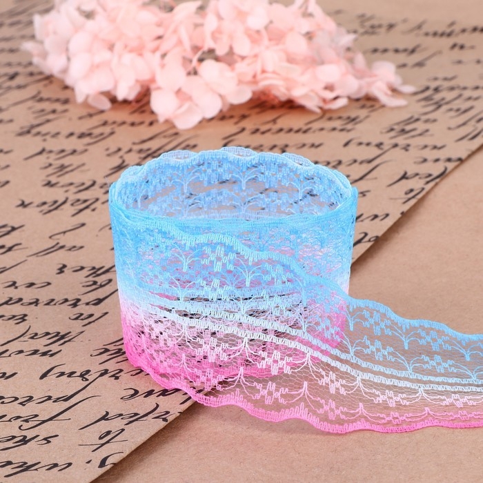 Кружево капроновое «Градиент», 45 мм × 10 ± 1 м, цвет розовый/голубой №4