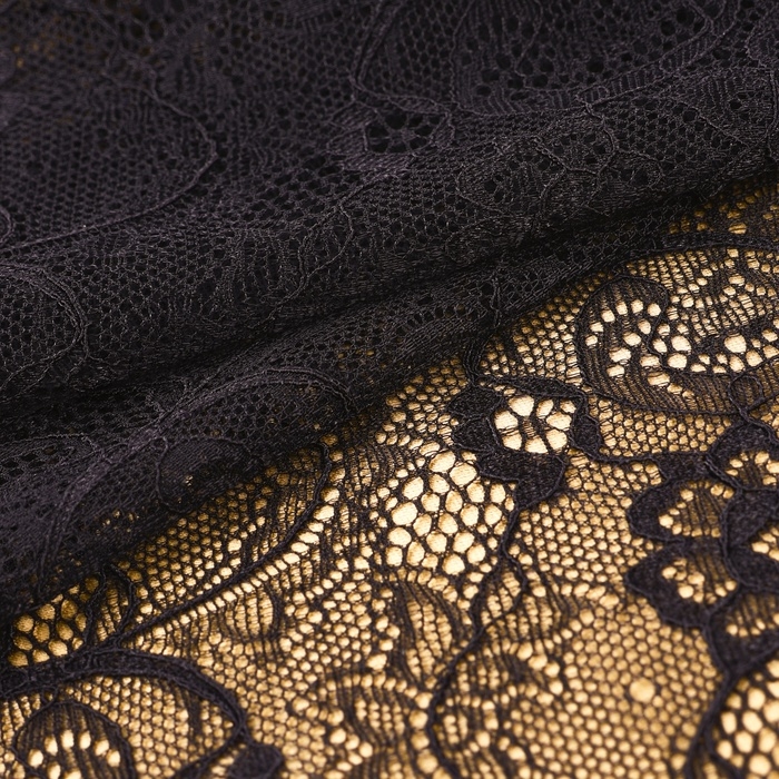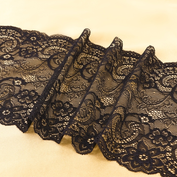 Кружевная эластичная ткань, 190 мм × 2,7 ± 0,5 м, цвет чёрный