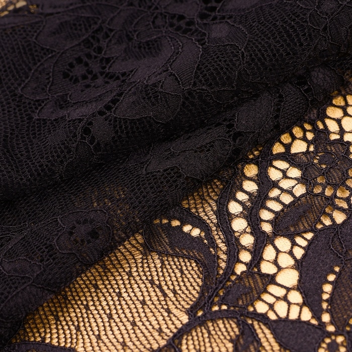 Кружевная эластичная ткань, 180 мм × 2,7 ± 0,5 м, цвет чёрный