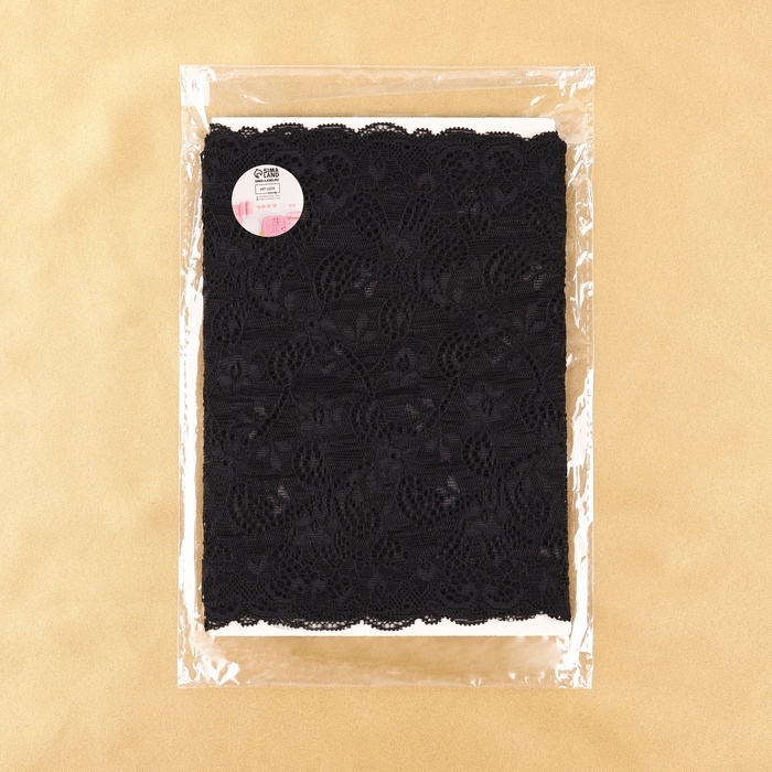 Кружевная эластичная ткань, 180 мм × 2,7 ± 0,5 м, цвет чёрный