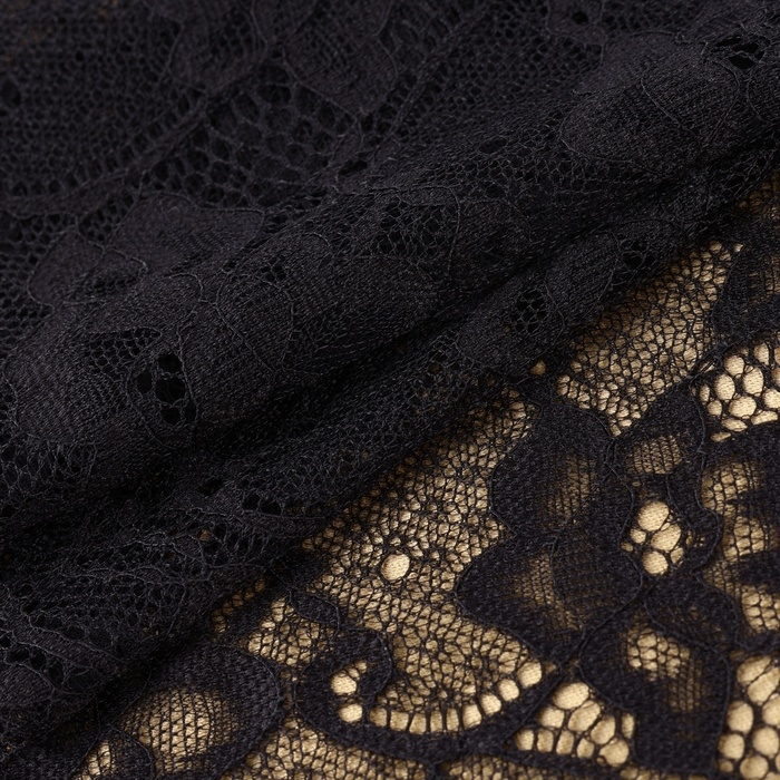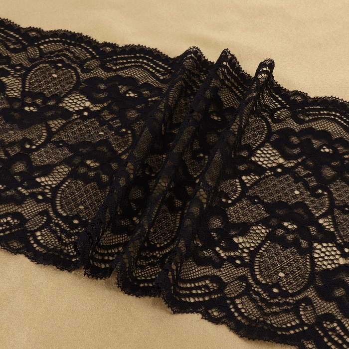 Кружевная эластичная ткань, 220 мм × 2,7 ± 0,5 м, цвет чёрный