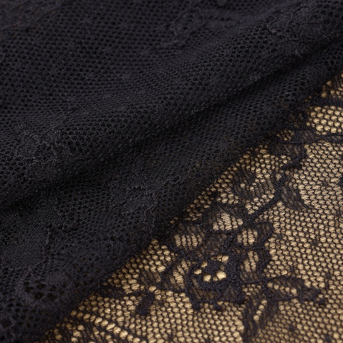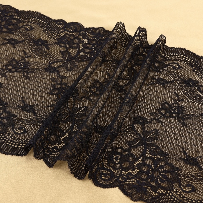 Кружевная эластичная ткань, 240 мм × 2,7 ± 0,5 м, цвет чёрный