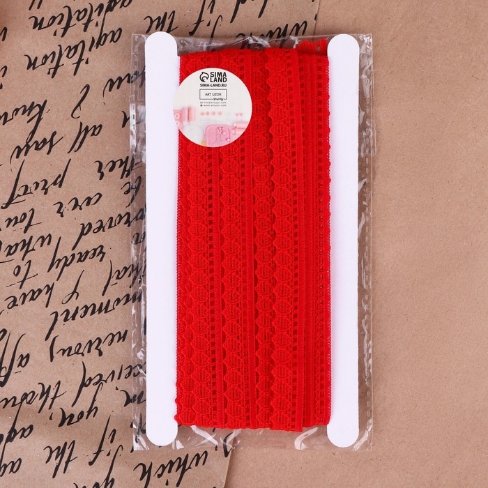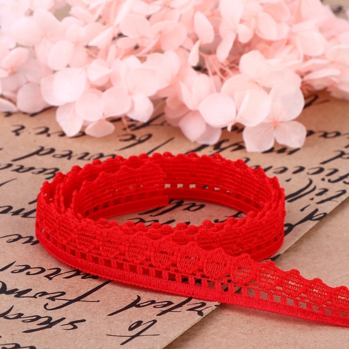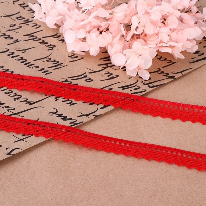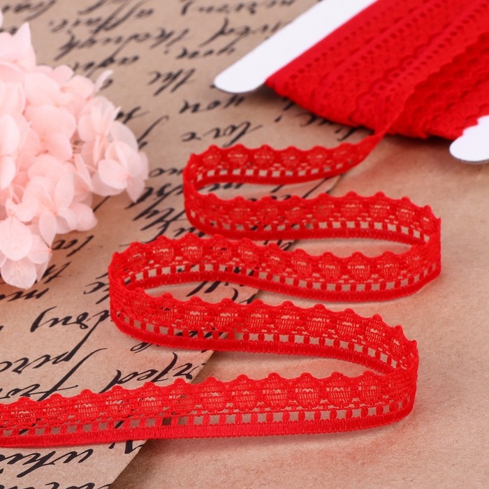 Кружево капроновое, 12 мм × 10 ± 1 м, цвет красный