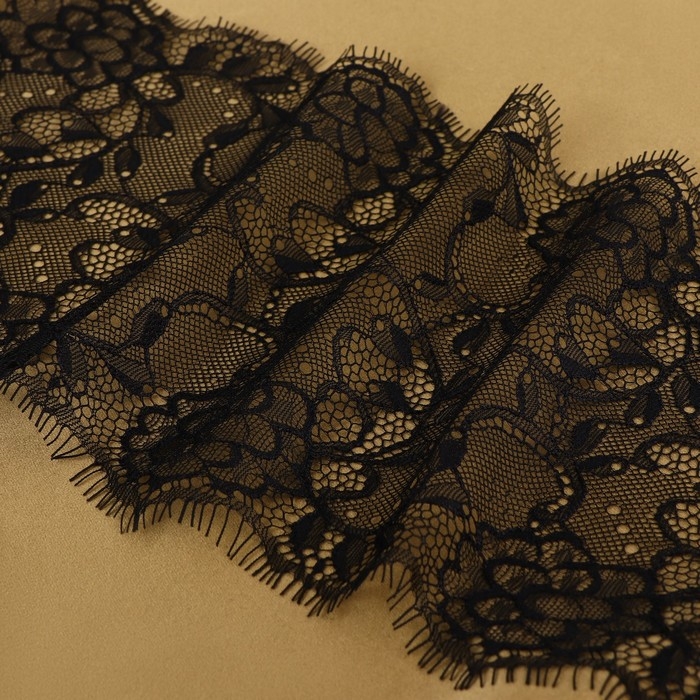 Кружево реснички, 175 мм × 3 ± 0,5 м, цвет чёрный