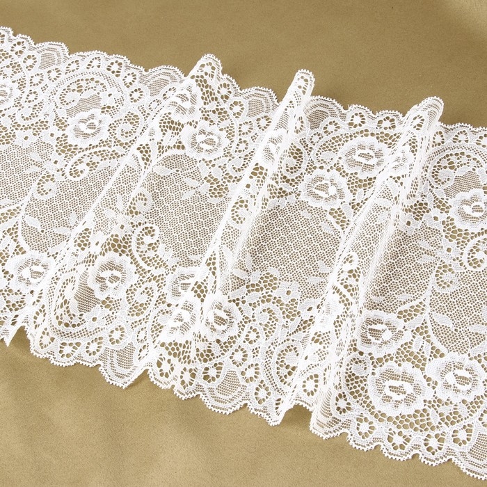 Кружевная эластичная ткань, 195 мм × 2,7 ± 0,5 м, цвет белый