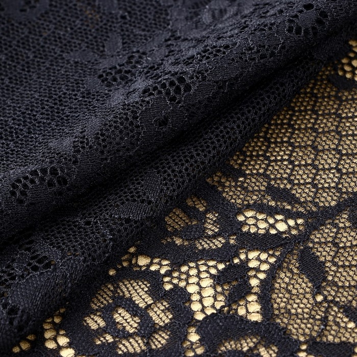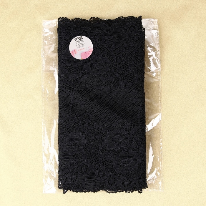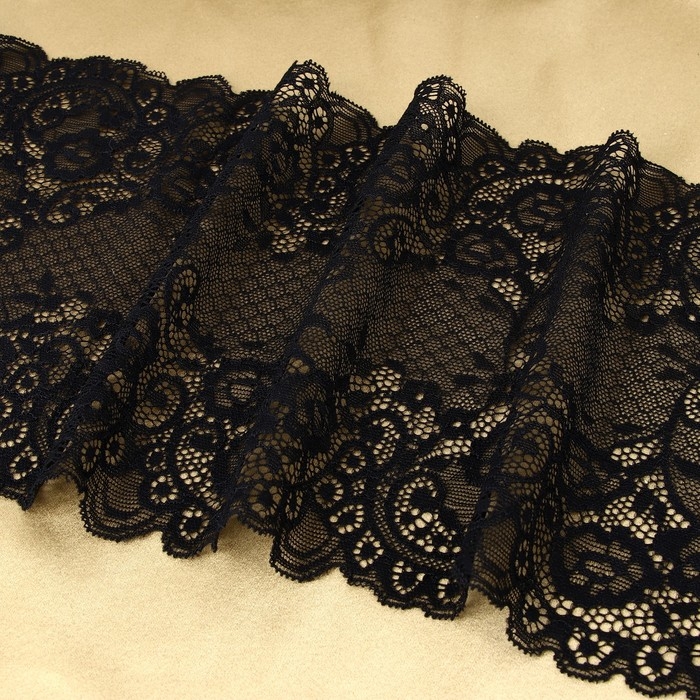 Кружевная эластичная ткань, 195 мм × 2,7 ± 0,5 м, цвет чёрный