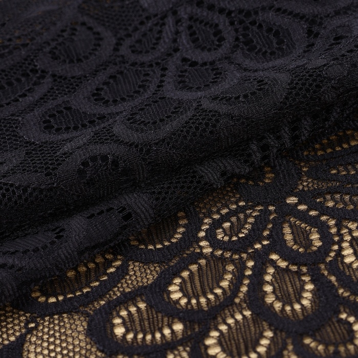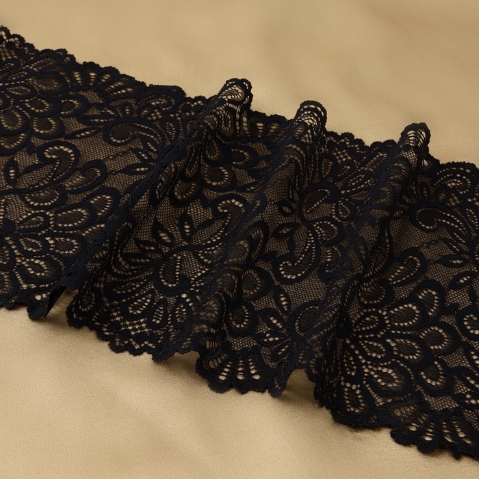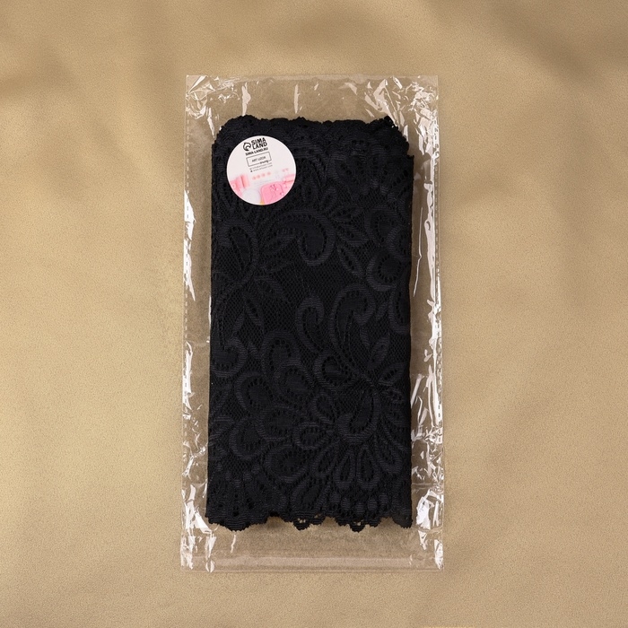 Кружевная эластичная ткань, 185 мм × 2,7 ± 0,5 м, цвет чёрный