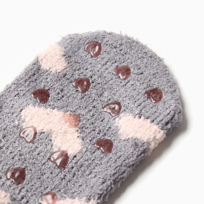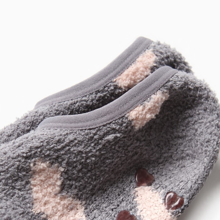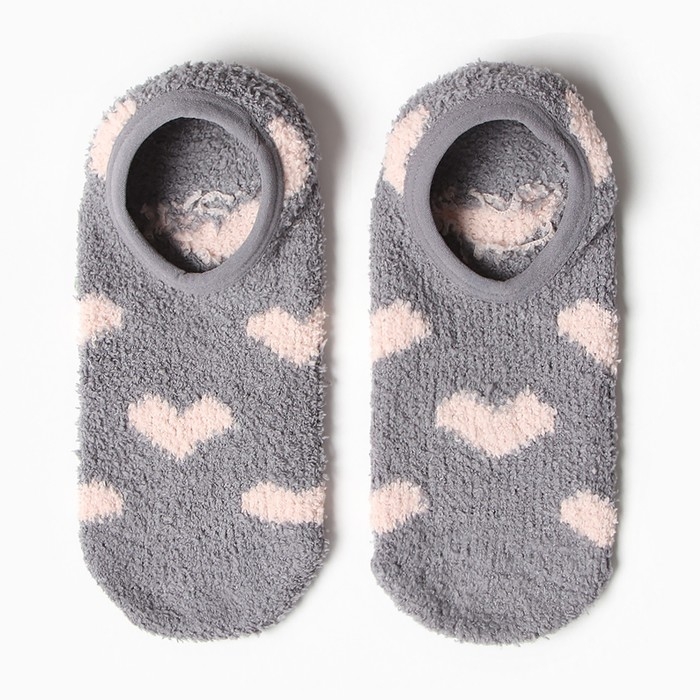 Носки женские укороченные с нескользящей подошвой, цвет светло-серый с сердечками, размер 36-39