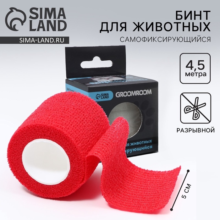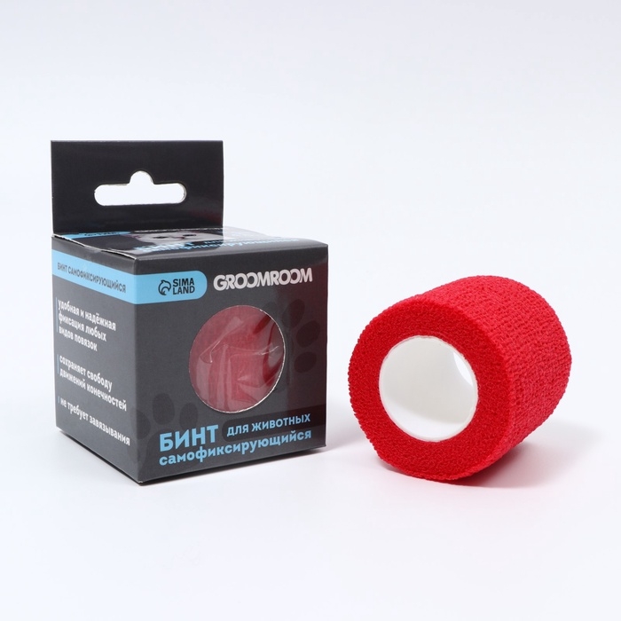 Бинт самофиксирующийся разрывной «Groomroom», 5 см х 4,5 м, красный