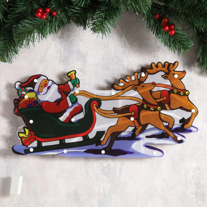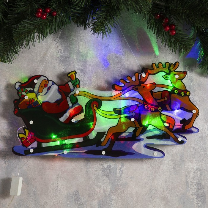 Светодиодная фигура «Дед Мороз в санях» 45 × 24 см, пластик, 220 В, свечение мульти (RG/RB)