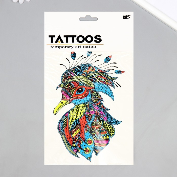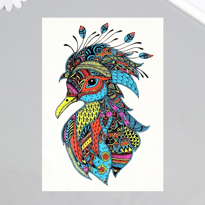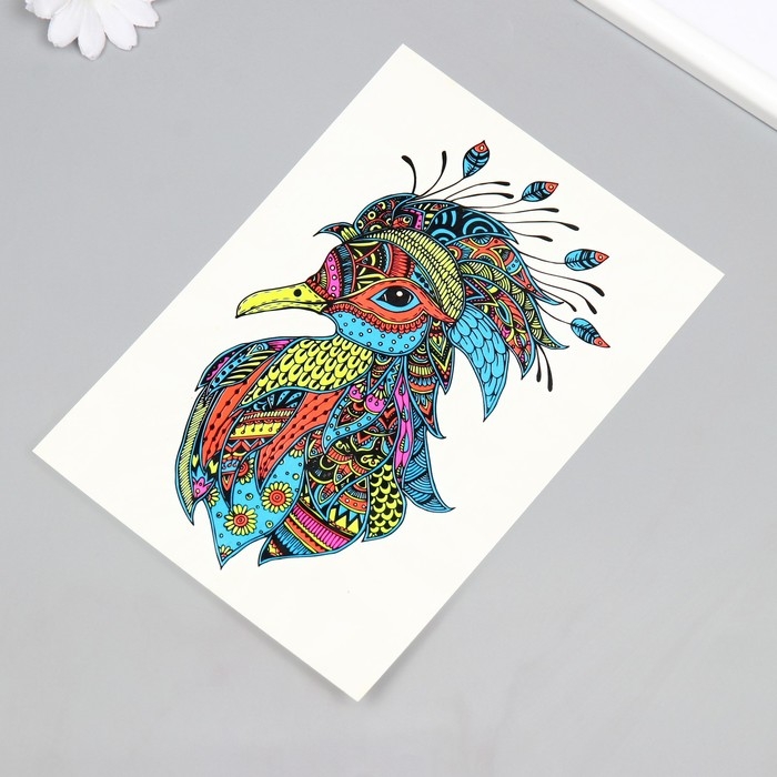 Татуировка на тело неон цветная "Птица в узорах" 26х14,5 см
